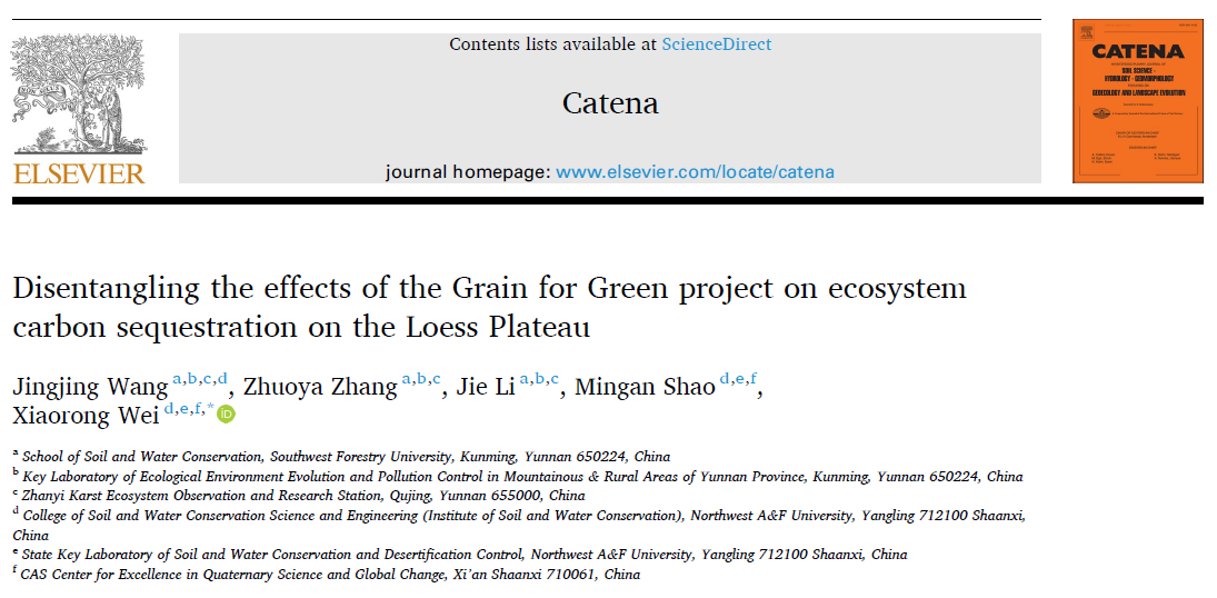 水土保持学院青年教师王晶晶在《Catena》发表研究成果