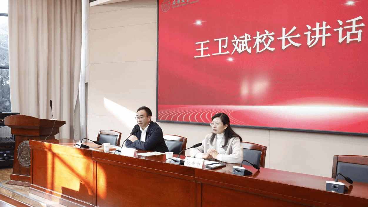 12月27日,西南林业大学2024年新入职教职工培训结业仪式在立德楼二楼报告厅举行,王卫斌校长出席并讲话,会议由狄光智副校长主持。