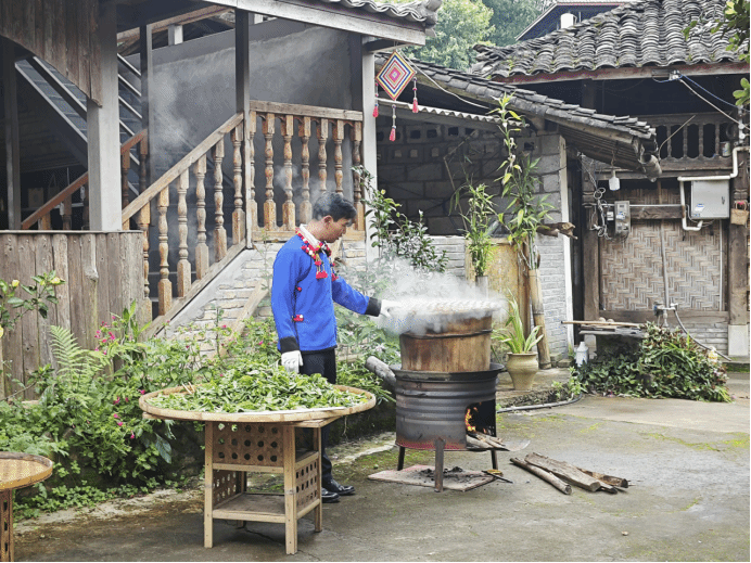 此外,调研组一行还赴三台山德昂族乡走访国家级非物质文化遗产代表性项目《德昂族酸茶制作技艺》,市级代表性传承人赵腊退。深入了解了德昂酸茶的传统制作流程,包括采摘、厌氧发酵、压制、包装等环节,并就工艺细节与文化内涵进行了深入交流。李法营认为,德昂酸茶不仅是一种独具风味的茶品,更承载着德昂族悠久的历史记忆和文化认同,其技艺传承与产业开发值得进一步推动。