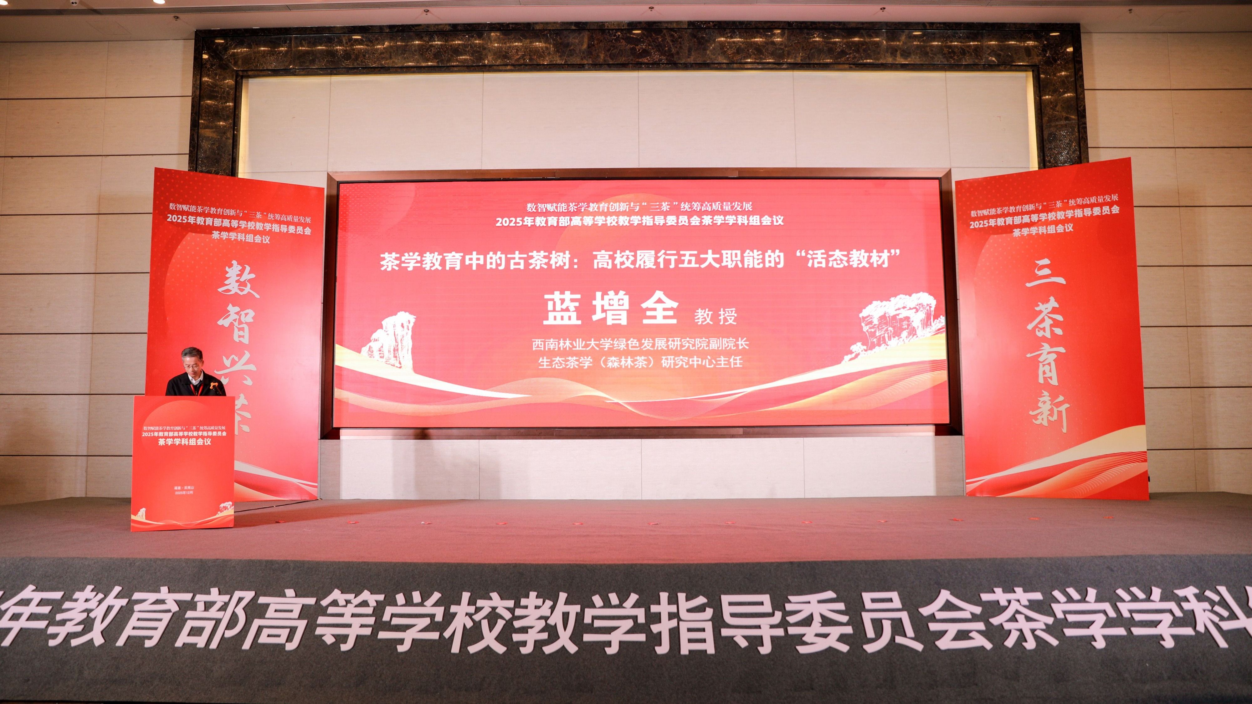 蓝增全在大会上作了题为《茶学教育中的古茶树:高校履行五大职能的“活态教材”》的专题报告。报告围绕高校的人才培养、科学研究、服务社会、文化传承与创新、国际交流合作等职能,阐述古茶树资源在茶学教育中的价值,结合“三茶统筹”理念,探讨古茶树的保护与可持续利用路径。会议同期公布第八届全国茶学专业青年教师教学能力大赛获奖名单,我校吴田教授荣获大赛一等奖。