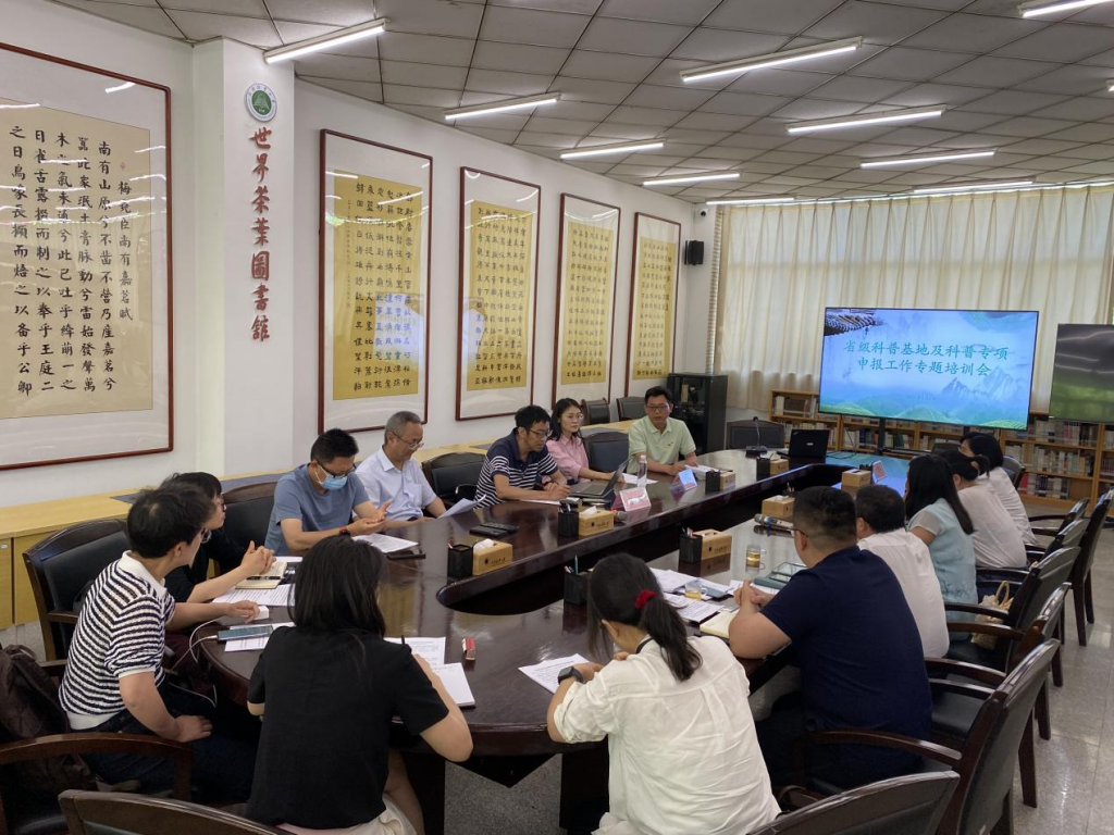为提升省级科普专项申报水平和科普图书出版能力,加强科普基地建设,推动学校科普工作的发展。在学校深入开展学习贯彻习近平新时代中国特色社会主义思想主题教育之际,5月6日,科学技术处邀请云南省科学技术情报研究院科普中心主任曹琛、云南科技出版社编辑屈雨婷一行到我校进行专题培训交流。会议由科学技术处处长朱俊琳主持,图书馆、校团委、标本馆领导和负责科普工作的老师,以及各学院有申报意向的老师等20余人参会。
