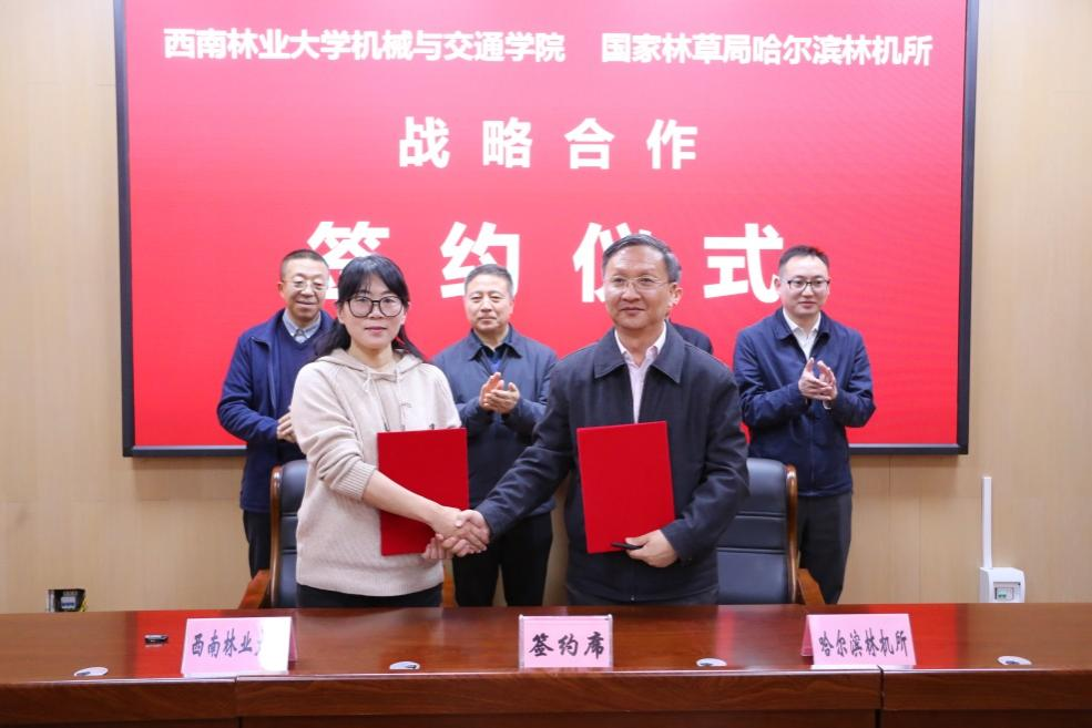 会议期间,国家林业和草原局哈尔滨林机所与西南林业大学机械与交通学院、北京林业大学工学院、东北林业大学机电学院等6家单位签署了全面合作协议,旨在科技创新、人才培养、平台建设、质量检测和标准制修订等方面开展深入合作,共同推进我国林业机械行业发展。