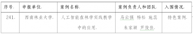 2024年11月26日,由中国教育技术协会举办的“‘新质•引领•赋能’首届数字教育示范案例征集活动”中,西南林业大学林学院(亚太林学院)的“人工智能在林学实践教学中的应用”项目荣获特色案例,这是西南林业大学林学学科在数字化和人工智能技术与教育教学融合方面取得的又一重要进展。
