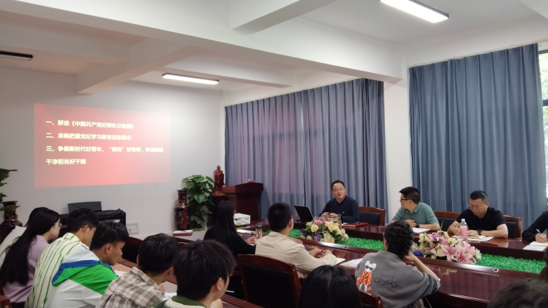 读书班上,党员同志们原原本本、逐章逐句学习《中国共产党纪律处分条例》(以下简称《条例》),学院党委邀请校党委委员、统战部部长王泾作党纪学习教育专题辅导。王泾以《以党纪学习教育优良成效推动各项工作高质量发展》为题,深入浅出地解读《条例》,勉励同志们争做新时代好青年、“四有”好老师,成为忠诚干净担当好干部。随后,学院党委班子成员、党员系主任等作交流研讨发言。