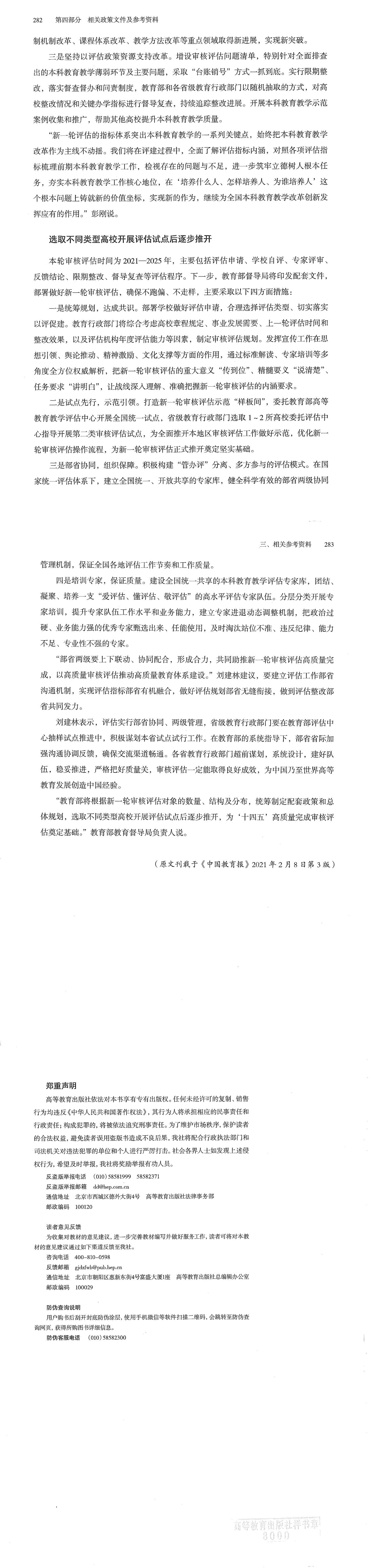上一条:普通高等学校本科教育教学审核评估指标体系(试行)
