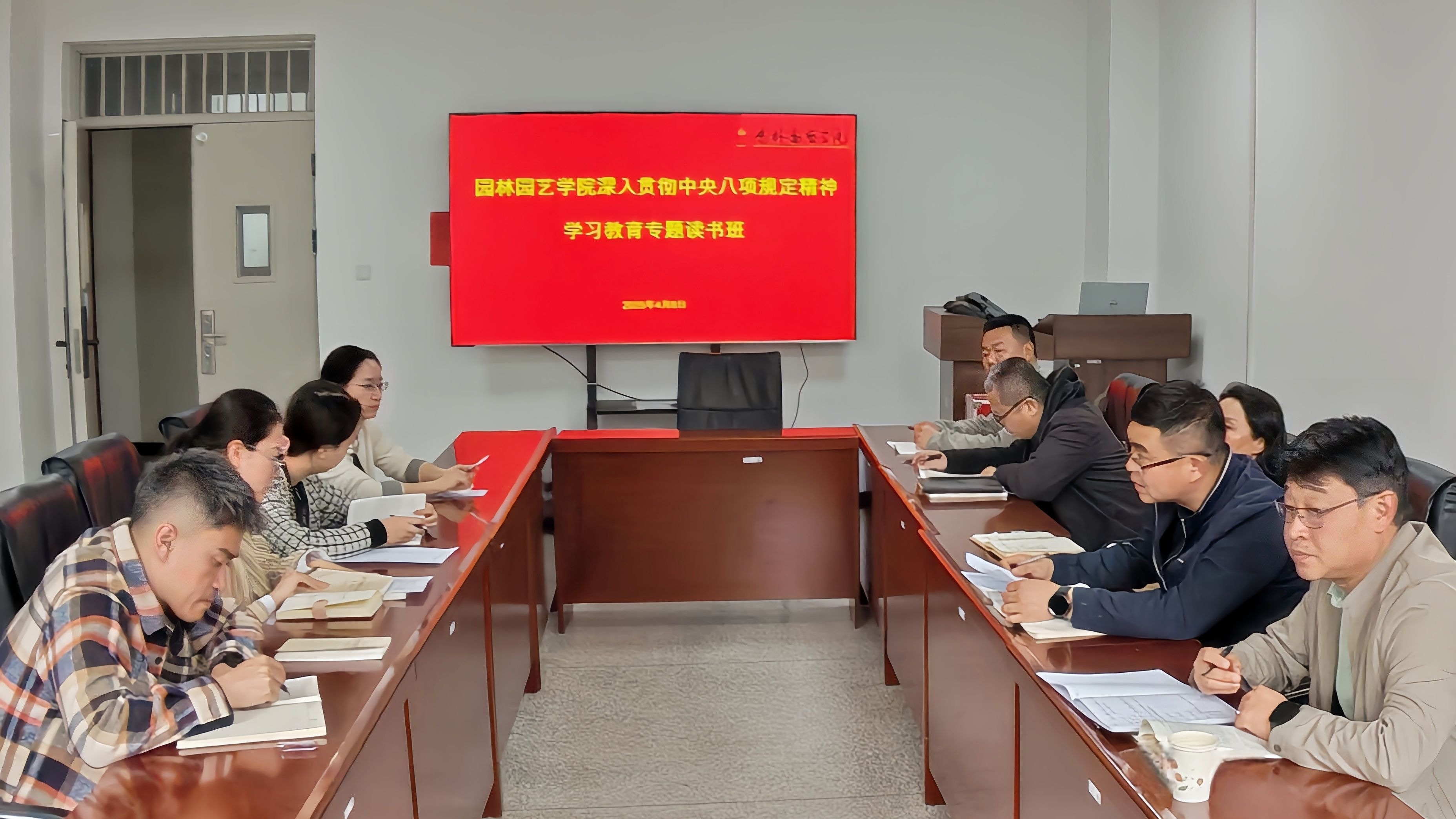 4月8日,园林园艺学院党委举办深入贯彻中央八项规定精神学习教育读书班。学院党委书记刘刚连主持读书班并讲话,强调要认真学习习近平总书记关于加强党的作风建设的重要论述、中央八项规定及其实施细则精神,深刻领悟这次学习教育的意义。